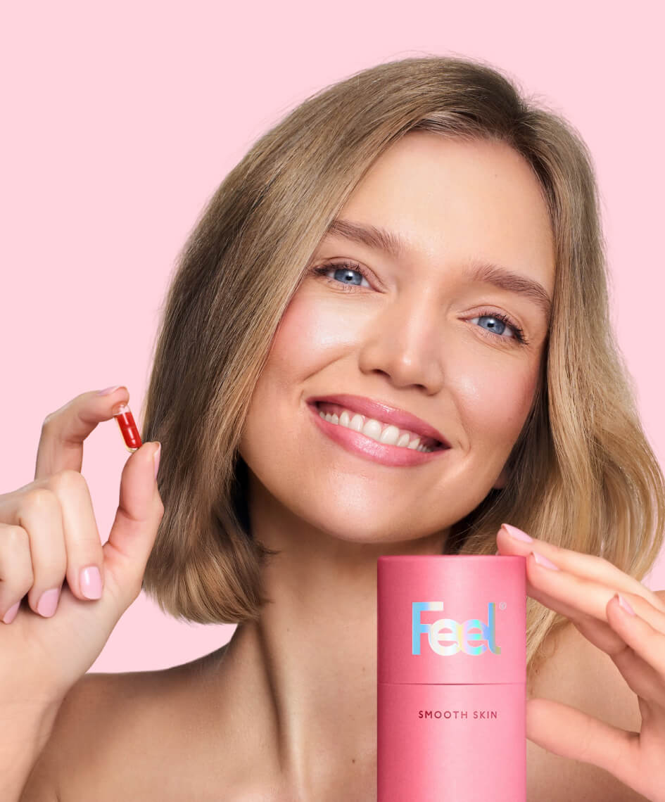 فييل سموث سكِن لبشرة صحية هو مكمل غذائي. المكملات الغذائية ليست بديلاً عن نظام غذائي متنوع ومتوازن وأسلوب حياة صحي.