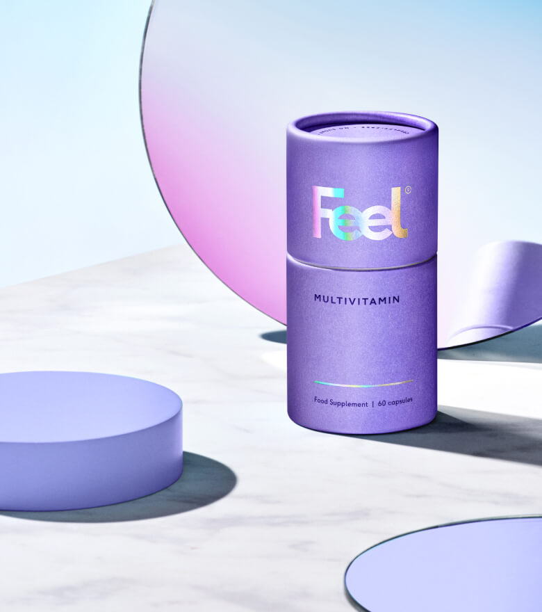 Feel Multivitamin is vegan, gluten free, halal, kosher, non-GMO and free from all 14 major allergens. Our products contain no artificial fillers, bulking agents or colours and all packaging is made from 100% plant-derived, plastic-free materials.
