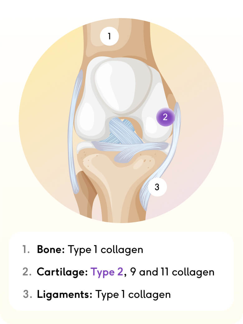 Type 2 collagen makes up 95% of joint cartilage, supporting comfort and flexibility.